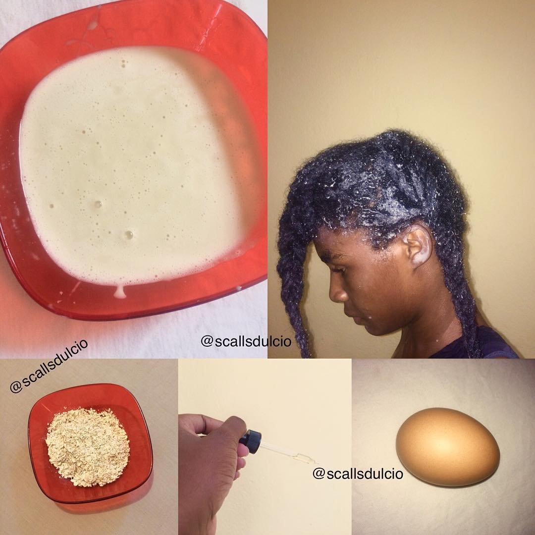 Blende yon kantite avwan (ou ka mezire l selon kantite cheve w) avèk dlo tyèd, yon ze epi kèk gout lwil kokoye. .