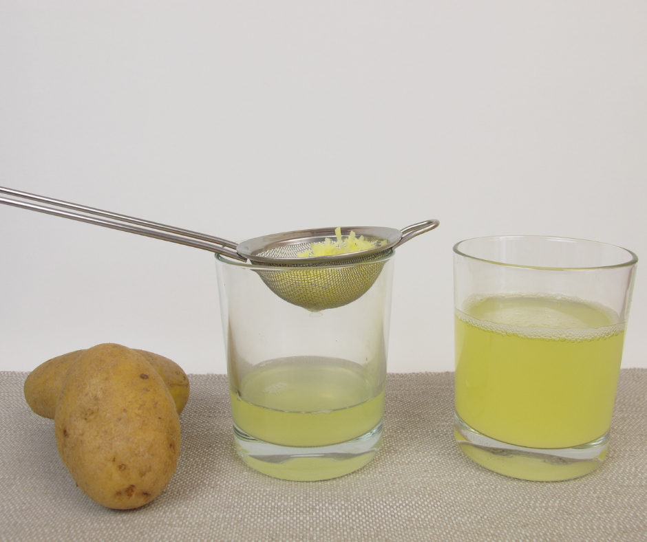 Koule l nan yon paswa oubyen twal fen pou w pran dlo Pom de tè a.